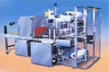 Automatic shrink or stretch packaging of glass, plastic or metal containers, boxes or